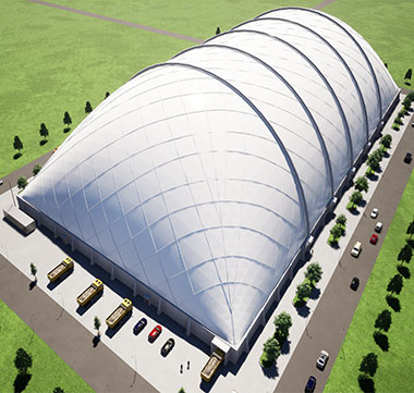 無梁無柱大跨度空間,跨度可達180米,空間使用率可達九成以上,體育、娛樂、展示等多功能需求均可應用,在煤倉和污水處理方面也可應用。